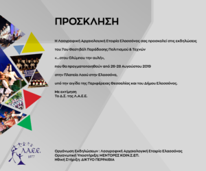 Οργάνωση Εκδηλώσεων: Λαογραφική Αρχαιολογική Εταιρία Ελασσόνας