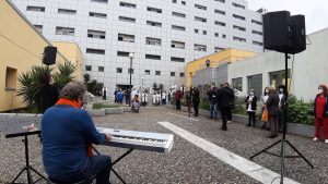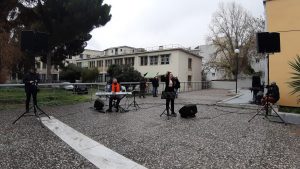 Έτσι, σε ένα ιδιαίτερα συγκινητικό κλίμα και με πολλά κοινωνικά μηνύματα, πραγματοποιήθηκε τη Δευτέρα 21/12/2020, στις 11 το πρωΐ, μουσική εκδήλωση στον αύλειο χώρο του “Αχιλλοπούλειου” Νοσοκομείου Βόλου, προς τιμήν όλων των εργαζομένων , αλλά κυρίως προς τιμήν όλων εκείνων που νοσηλεύονται στο νοσοκομείο χτυπημένοι από τη μάστιγα του κορονοϊού και δίνουν τη μεγάλη μάχη της ζωής τους, δίνοντας μια ευχάριστη και αισιόδοξη νότα ,στη σκληρή πραγματικότητα που επικρατεί το τελευταίο χρονικό διάστημα ,λόγω της πρωτόγνωρης πανδημίας και έχει δημιουργήσει τεράστια υγειονομικά ,κοινωνικά και οικονομικά προβλήματα, σε όλο τον κόσμο, με εκατοντάδες χιλιάδες να έχουν χάσει τη ζωή τους !