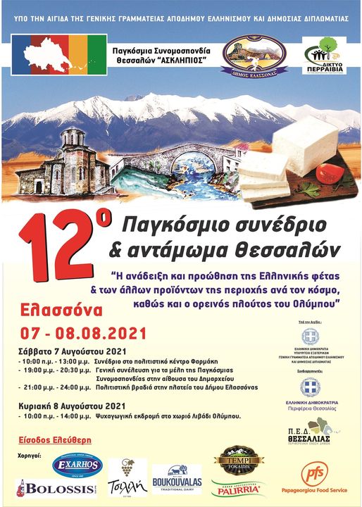 Μια σημαντική διοργάνωση το «12ο Παγκόσμιο Συνέδριο Θεσσαλών» θα φιλοξενήσει ο Δήμος Ελασσόνας στις 7 & 8 Αυγούστου 2021, στην πόλη της Ελασσόνας και στην ορεινή κοινότητα Λιβαδίου.